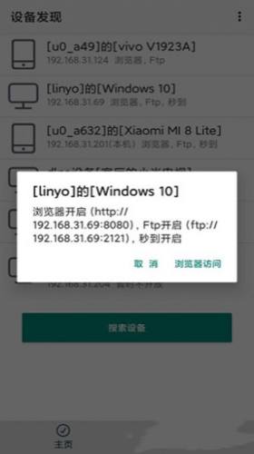 《手机盘》自带Http服务器和Ftp服务器,可以让电脑通过浏览器和文件资源管理器访问手机文件。如果两个设备都安装了此应用,可以自动发现设备,无需打字输入地址。