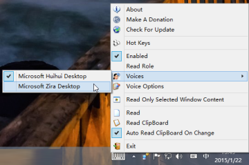 安装完毕运行后 Screen Reader会自己安安静静的呆在托盘里,你可以通过呼出它的菜单来实现朗读人声的切换。