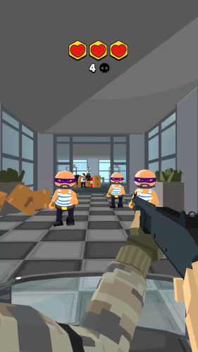 射击类的卡通游戏。你需要做的就是从歹徒手中解救出人质。游戏中你可以选择不同的武器作为你的挑战工具。