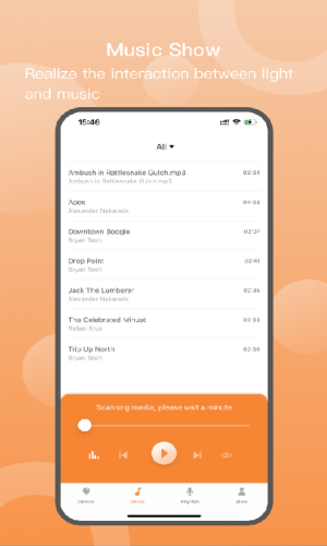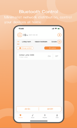 通过该APP可以对蓝牙灯泡秒级配网,快捷地调节亮度、色温和颜色,同时体验炫丽的音乐律动和情景模式。
