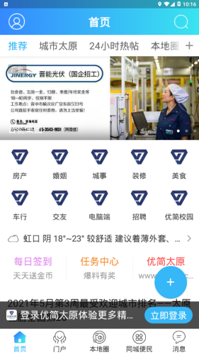 优简太原app是一款太原本地服务软件,在这里提供了太原本地吃喝玩乐、购物、新闻资讯,帮助用户更好了解本地生活情况,让用户生活更加方便。