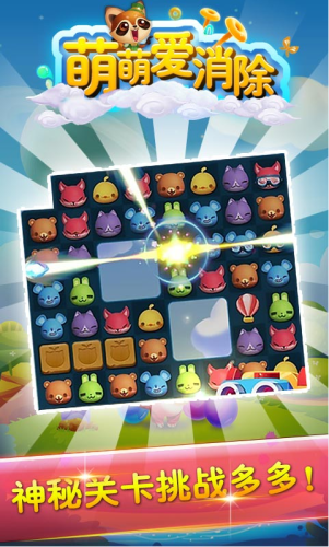 萌萌爱消除是一款典型有趣的消除类小游戏,整个游戏中会有一群可爱的小动物出现,小伙伴们手拉手将会有这不一样的惊喜。