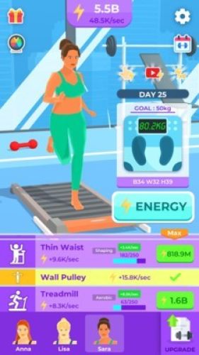 1、多种健身角色供你选择,完成任务,和他们一起发家致富;