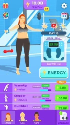 《一起来健身》是一款画面清新的放置挂机类休闲手游,游戏中玩家将控制一个胖胖的女孩去健身减肥,可以做各种不同的健身运动,升级强化来获得能量!