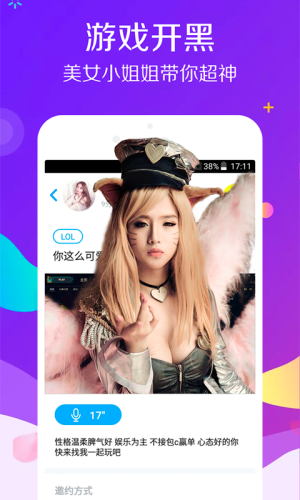 精选热门游戏,美女语音连麦陪你玩。小姐姐1对1语音连麦陪玩,全程听指挥为你挡刀,带你飞,你喜欢的我都有。