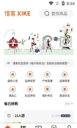 惜客优选app是一款非常好用的网购省钱软件,在这里可以实时了解不同的限时活动,可以随时查找不同的优质商品,包含了每日拼购、微视和资讯等内容,从多方面了解各种好商品,实时推送新品了解,随时加入团购。