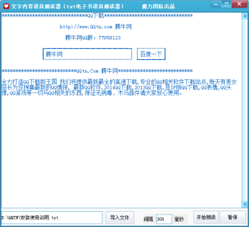 文本内容语音朗读器,魔力团队出品,软件可以将txt文本内容以语音的方式朗读出来。软件自带了多套语音引擎,用户只需导入文本内容即可转换朗读。可以用于电子书小说朗读使用。