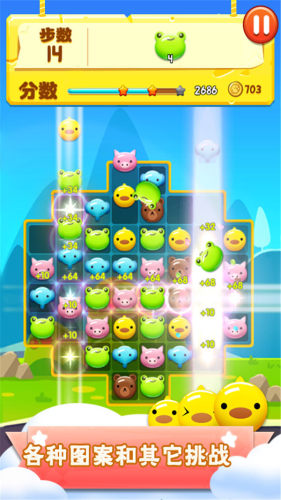 2、滑动手指让三个相同动物连接在一起即可消除。