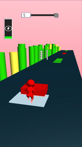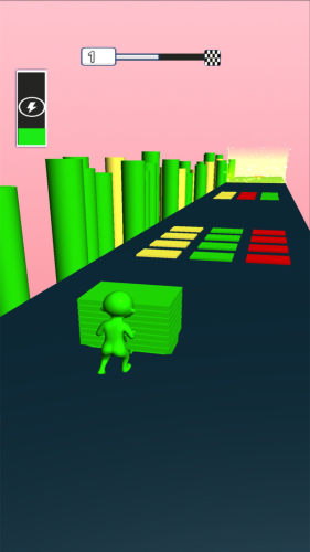 休闲竞速游戏。在游戏中,玩家需要控制角色自由奔跑并收集砖块。当砖块足够时,还可以选择走弯道抄近道。最终到达终点即可通关。