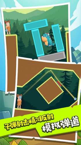 在游戏中,你扮演着一位身经百战的射击手,正在接受一项艰巨的射击任务挑战。在不同的地图场景中, 面对原始恐龙的入侵,你需要调整射击角度,使你的子弹以反射线的式飞出,击中你的目标,利用有限的子弹和精准的进度,以神射手的身份将入侵的敌人消灭掉。