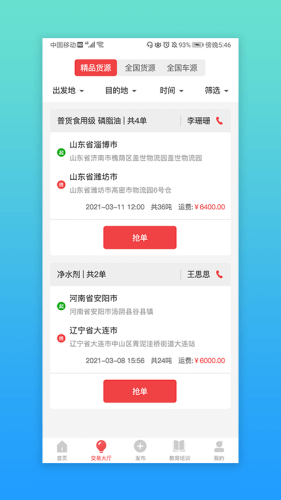 整合了全国各地配货站和物流公司信息,用户通过平台可自主联系可用车辆或可运货物,解决了目前市场上因为信息获取不足而导致的空车无货可运,货物无车可送的问题,使贸易商和承运商之间的信息衔接更加及时,充足。