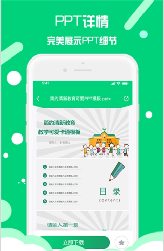 1、懒人PPT模板制作app里的模板分类多样,自如挑选模板即可马上下载;