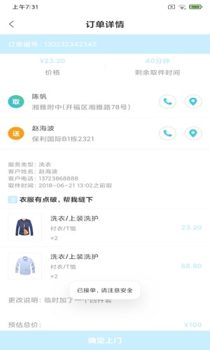 【便捷】洗衣,1键下单,轻松快捷;2小时内上门取送衣、鞋,服务到家;3天送回,洗衣过程可追溯。