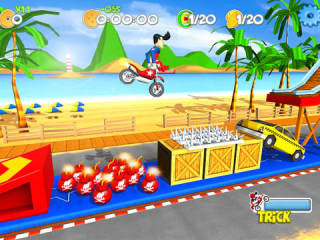 游戏讲述一位年轻的极限摩托手,为了接班老爸的衣钵,努力刻苦训练,话说外国的老爸真就这么狠心怂恿自己儿子去玩命么…… 游戏在一条笔直赛道上进行,中间有很多障碍物,只不过除了常见的木箱,坡道之类的东西,更多了夺命的尖钉、炸弹、火盆……等等,稍有不慎,可怜的主人公麦克斯就立刻插上“天使的翅膀”,不幸挂掉,真是步步惊心啊! 游戏趣味度很高,手感也不错,整体风格轻松搞笑,适合大部分玩家,特别是极限摩托爱好者。