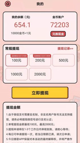 今日猜歌赚钱app是真的吗,今日猜歌真的能领红包吗,这款全新的猜歌赚钱软件当然是真的啦,的确可以免费获得红包。这里有成千上万首歌曲可以解锁,只要准确猜对,就可以领到对应红包,这就是今日猜歌的魅力。