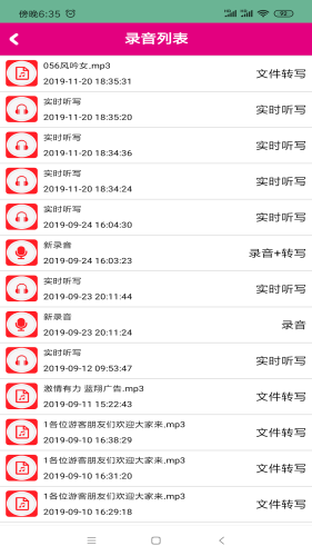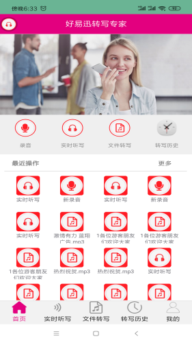 一款语音识别录音转文字的app,主要包含录音、实时听写、文件转写、个人中心、转写记录等功能,