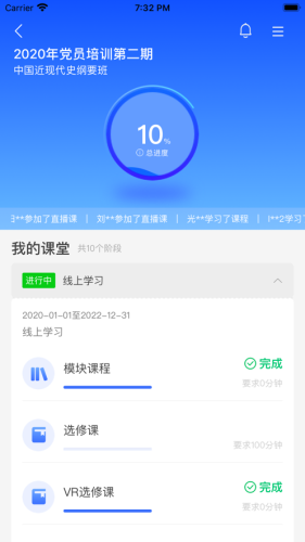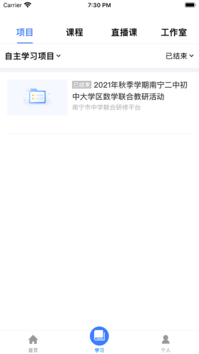 个人:查看个人信息,修改个人头像,绑定课程卡/学习卡,查看个人参加的课程、培训项目、设置相关信息;