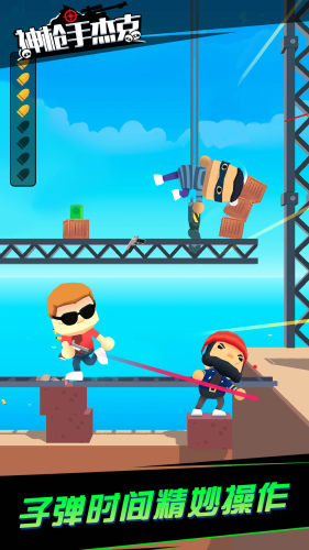 卡通风格的动作射击游戏。游戏里面玩家们将扮演一位神枪手,在关卡中接受到各种任务,暗杀目标获得奖励。在这里所有人物的造型都是卡通的风格,关卡里面的难度虽然不高,但是其中的玩法会非常的有趣。