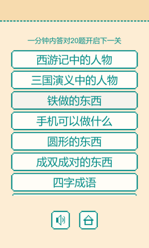 关卡模式:一分钟之内答对20道题就过关,记住每一关只有3秒反应时间