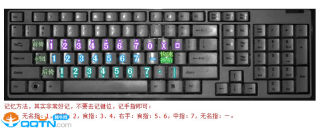 记忆方法,其实非常好记,不要去记键位,记手指即可: