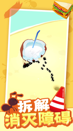 6、你将指挥不断扩大的蚁群,让他们吞噬更多的虫子,热狗,甚至是飞机!让你的蚂蚁大军吞噬眼前的一切,从而为你赚得可以使用的奖励金币。