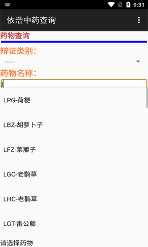 可以根据不同的选项查找药性,用户直接点击任意选项即可;