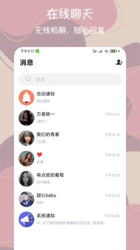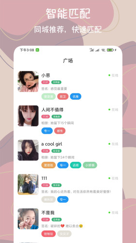 在这里,你可以和陌生人恋爱聊天交友、匹配恋爱约会,默默聆听; 也可以快速匹配同城附近的陌生好友,24小时随时随地约会交友聊天。