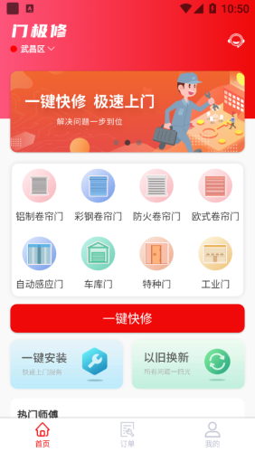 门极修app是一款专业的维修软件,在这里提供铝制卷帘门、防火卷帘门、特种门等等维修服务,用户可以一键预约,就会有专业的维修师傅上门维修,而且价格透明,安全有保障。