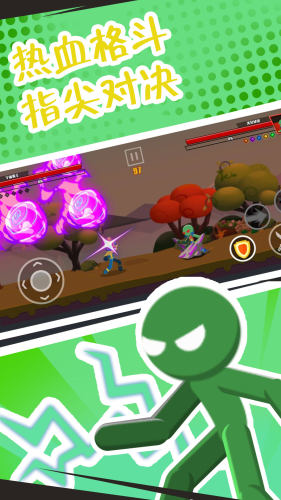 非常的快节奏的格斗竞技游戏,经典的火柴人形象操作你的角色无限的技能连招带给玩家刺激的竞技热血,流畅的操作感丰富的场景打击感非常的强烈。