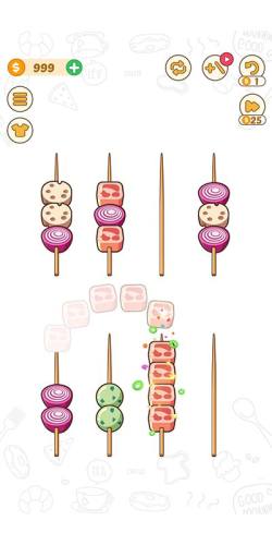 BBQ排序拼图是一款令人上瘾的益智游戏!试着把竹签上的食材分类,当所有食材都在同一个竹签上即为胜利。