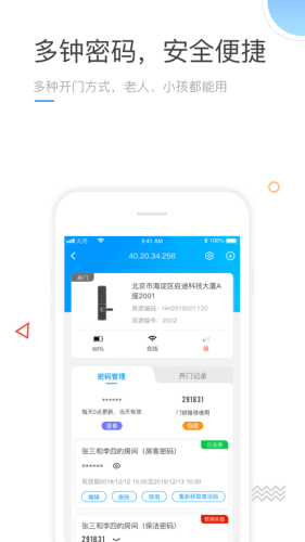 其主要功能包括添加和管理门锁、添加和管理开锁用户、添加管理开锁密码和门卡、设置用户权限和密码有效期等操作功能,以及查看门锁状态、开锁记录和门锁消息提醒等信息。