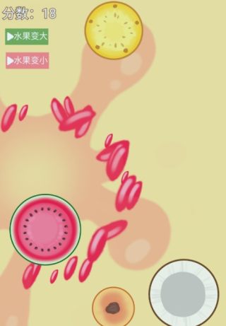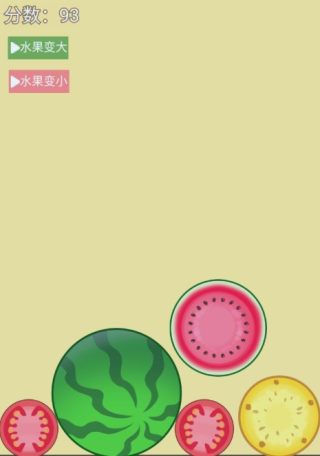 3、可以通过手指滑动水果,将两个相同的水果合成一个更大的水果。合成的水果越多,获得的分数越多;