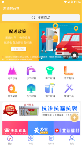 聚辅材商城app是一款建材交易软件平台,聚辅材商城app中拥有大量建材商品,详细的产品分类,用户可以根据需要进行购买,app提供送货上门服务,非常方便。