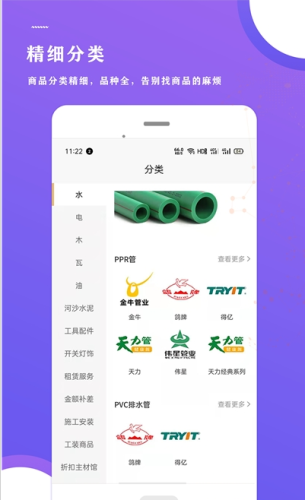 1.平台上的各种建材产品,按照类别详细分类用户筛选查找起来特别的方便。