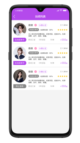 平台致力于让用户随时随地都能预约到心仪的技师,舒缓疲劳,放松身心!