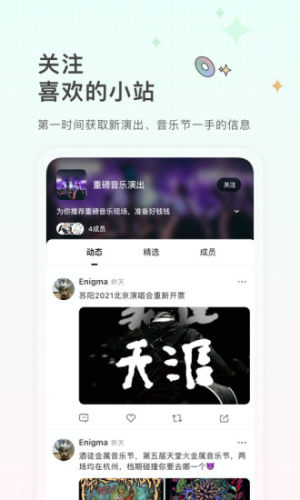 -你可以关注音乐类小站,获取新歌的发行预告,认识更多“宝藏乐队”,还可以找到志趣相投的同伴“一起组乐队”;