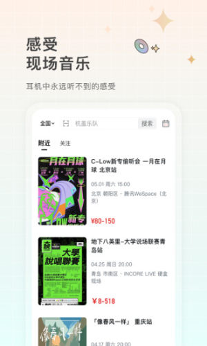 -你可以第一时间获取音乐节、重磅演出的第一手消息,并可以在线与朋友分享讨论演出;