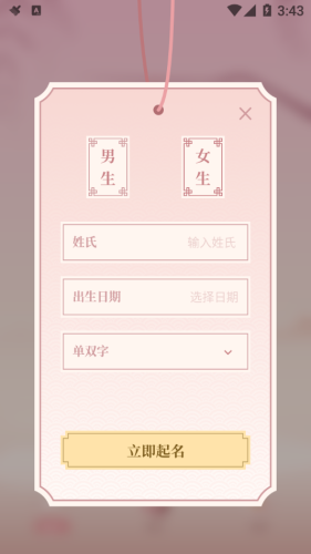 八字起名app是一款起名软件,在这里帮助孩子轻轻松松起好名,好的名字容易记住,还有大师在线帮助解析名字的寓意,不再为孩子起名而烦恼,一款起名必备应用。