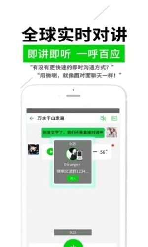 微喇对讲APP是一款手机实时对讲和语音聊天社交应用,一键实现全球对讲和语音呼叫,手机黑屏锁屏都可以直接播放语音信息,是一种即时语音聊天和社交的新潮通讯方式。全球超过亿万人都在使用实时对讲服务,使用微喇对讲,您不仅可以与家人朋友、团队之间进行实时对讲沟通,更可以结识具有相同兴趣爱好和共同话题的朋友。使用微喇对讲APP,手机秒变对讲机!自驾游、出租车、物流车队、无线电爱好者(HAM)、代驾、救援、团队沟通、集团调度、朋友家人聊天等必备!