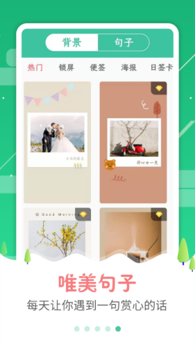 1、海量背景图库任你选择,锁屏、封面、海报、少女、古风、纯色,渐变色背景等丰富背景,还可以自己上传图片进行编辑。