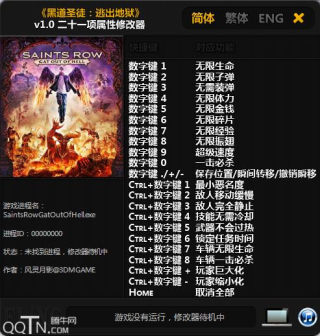 风大出品,必属精品。今天小编为大家带来风灵月影最新制作的《黑道圣徒:逃出地狱》全版本二十一项项修改器,此修改器依然支持简中、繁中、英文三种语言支持,修改器的功能也非常全面,喜欢玩《黑道圣徒:逃出地狱》而又懒得动手的玩家千万不要错过这款由风大制作的全版本修改器哦!