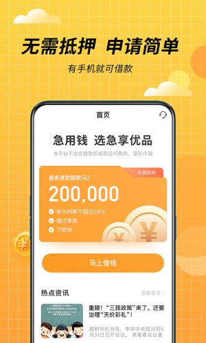 急享优品是一款专注于提供高额度、低利息、无抵押的信用贷款产品的普惠金融服务平台。主要解决信用人群日常生活资金周转需求,纯线上操作,资金到账快!