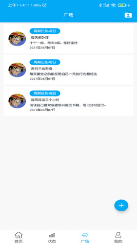 - 签到打卡:目标发起之后,坚持每天打卡,可以以文字与图片相结合的形式签到打卡,完成任务。