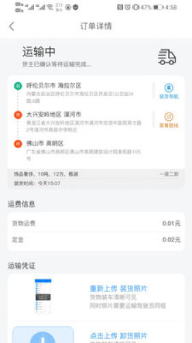 2、运输的线路进度都有展示,能够明确看到货主的服务流程;