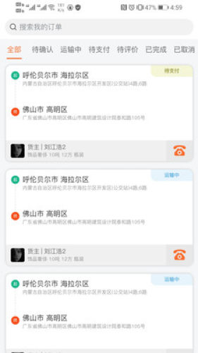 4、货灵鸟司机端app帮助司机处理订单,新订单第一时间接收处理,给有需要的人提供服务。