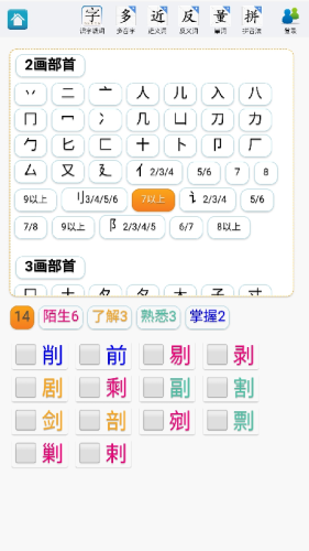把小学12册生字按照单元组织,能进行认读、默写练习,并且根据做练习的结果自动更新对每个字的掌握程度,实时的让家长和孩子了解会读哪些字、会写哪些字、哪些字测练时已经连续错误了几次。
