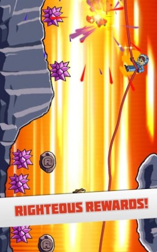 激进速降 Radical Rappelling游戏的灵感来自于一项极限运动——绳索速降,在游戏中有的场景同现实一样,玩家从山顶利用绳索不断先下降落,按住屏幕即可自动下降,但是如果不小心踩到带刺的水晶的话就会阵亡,是是不是很有意思,感兴趣的玩家可以下载挑战一下,看你能速降多远吧。
