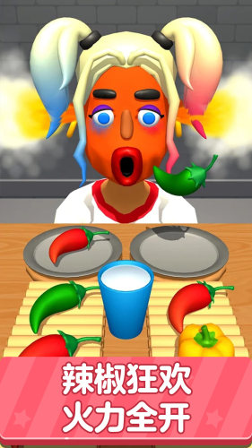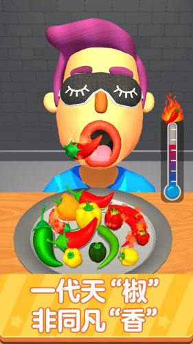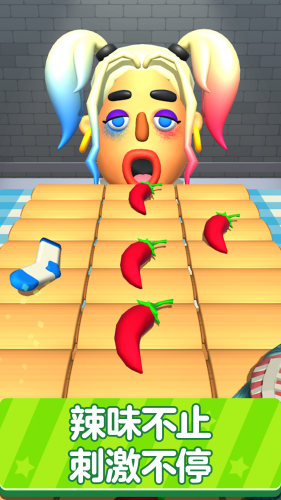 爆火街头,一款非常搞笑的吃东西游戏,我们的对面是爱吃辣椒的角色,在时限内给他们喂上最多的辣椒,用火辣辣的感觉让他们爆发,如果吃不到辣椒,顾客会不高兴的,