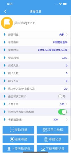 获取课程列表,考勤扫描、开启考勤、查看考勤记录、上传考勤记录、清空考勤记录、下载考勤记录、个人信息查看。