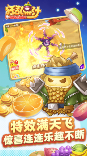狂乱果汁,一款画风超萌超可爱的休闲闯关游戏。这里打造一个可爱的水果世界,各种搞笑水果上线,不断切水果闯关,享受果汁四溅的快感,搭配魔性音效,让你欢乐不断。